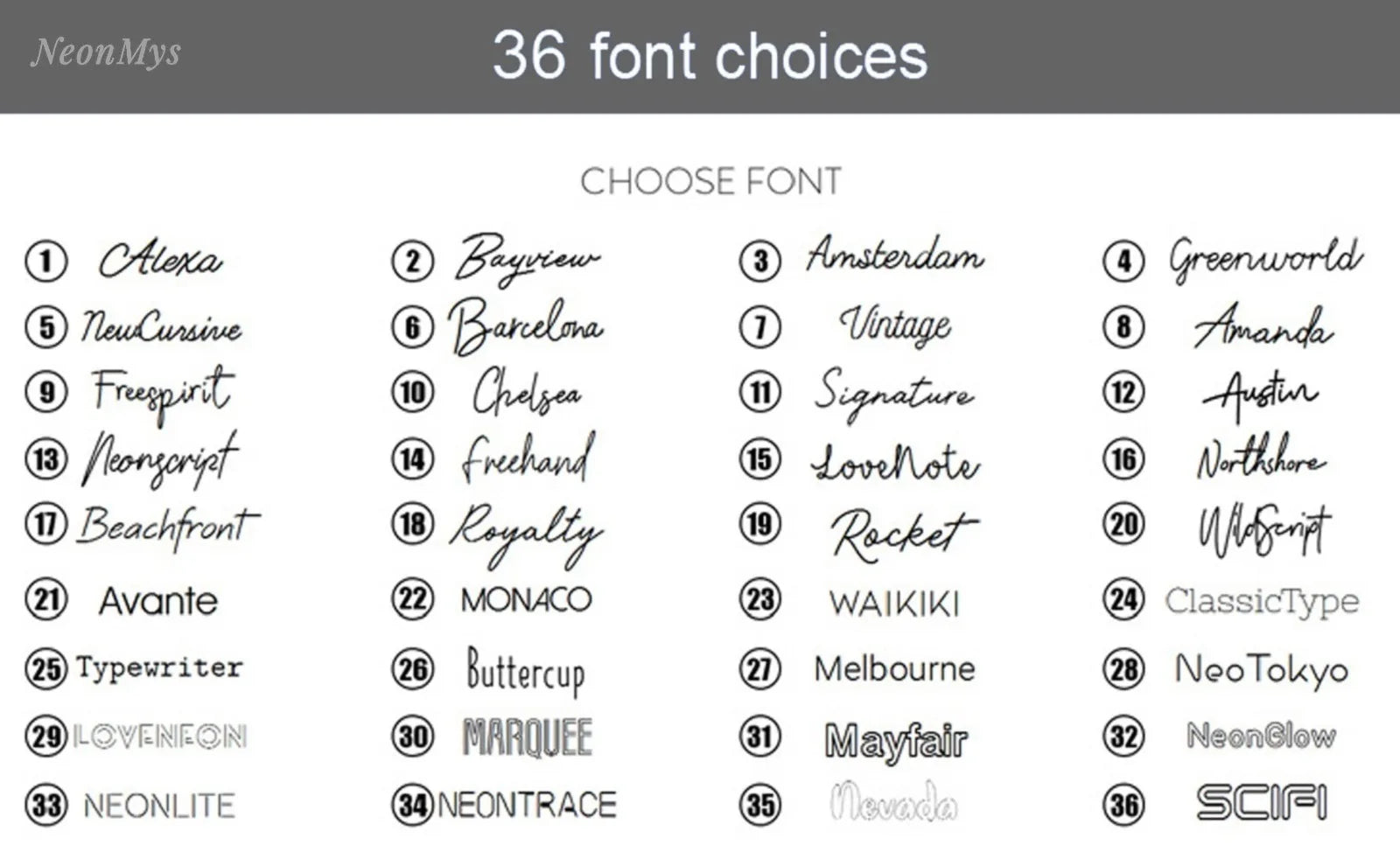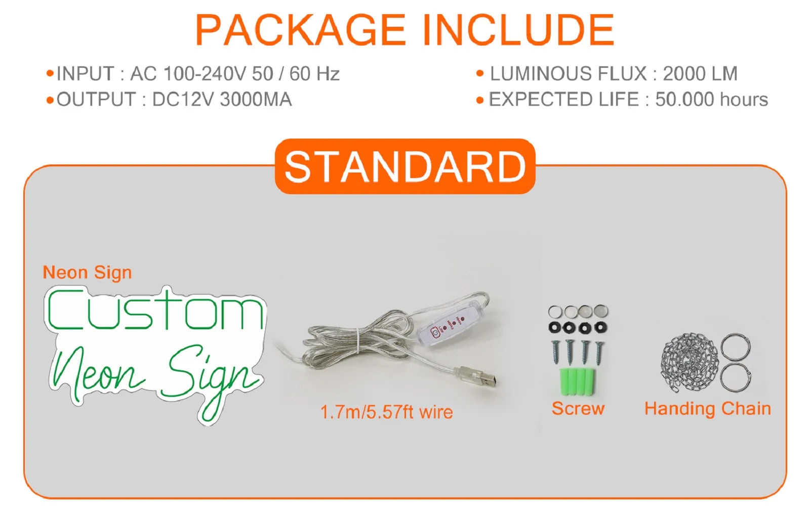 Create a custom neon sign for your bedroom, office, mancave, bar, etc. Color, font, size, and mounting type is all customizable. You're not limited to just text either! We can create logos or images too.